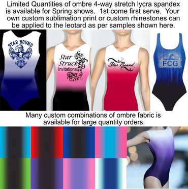 Custom logo rhinestones is the most widely used meet gift leotard, 4-way stretch lycra or our super soft performance fabrics. Custom sublimation leotards are available for a required minimum quantity.